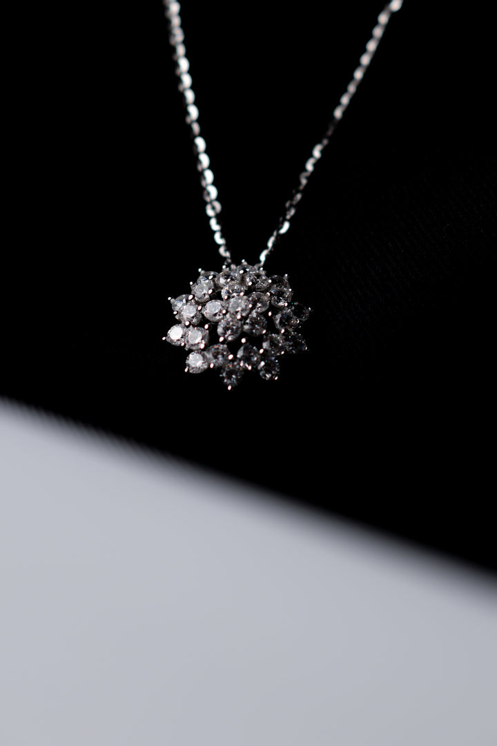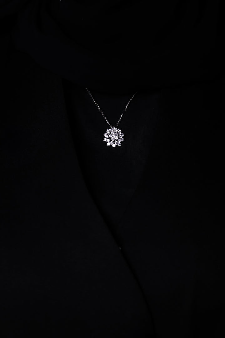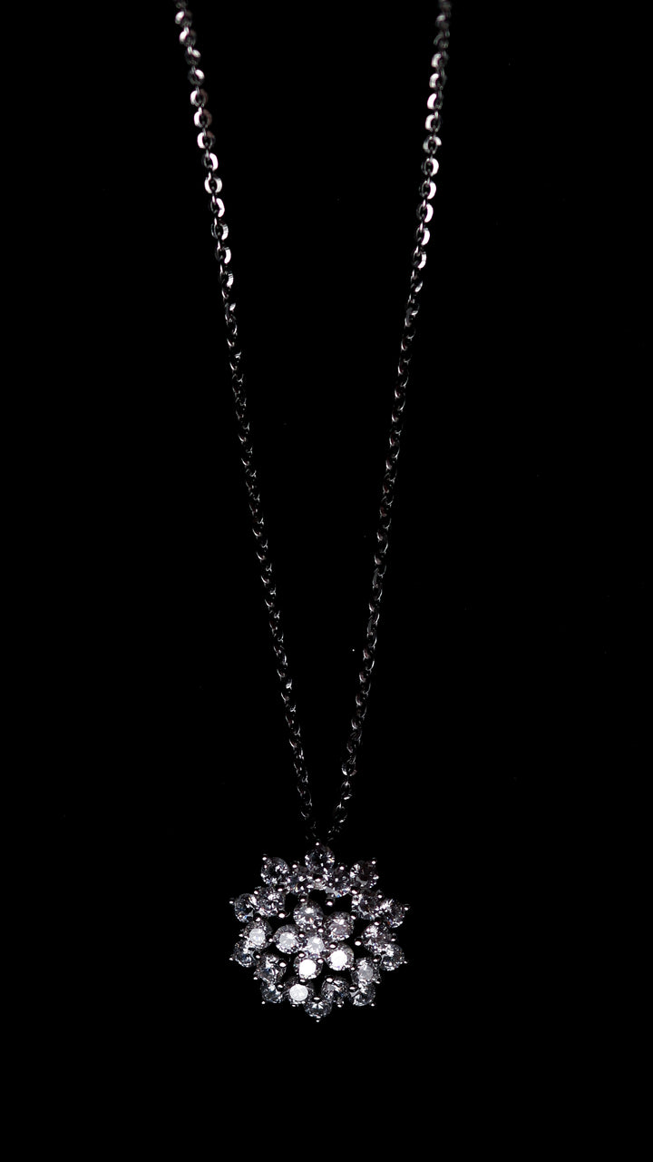 extra shiny 2 mm zircon studded pendant and 0.30 mm gauge Rhodium plated chain 40 cm in length
